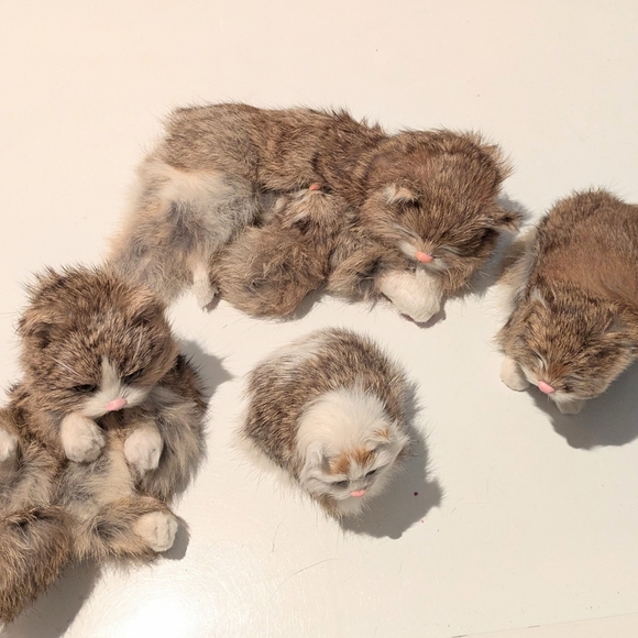 Set of Decorative Cats, Kittens made with Real Rabbit Fur in super condition. Makes a great gift or for your home.