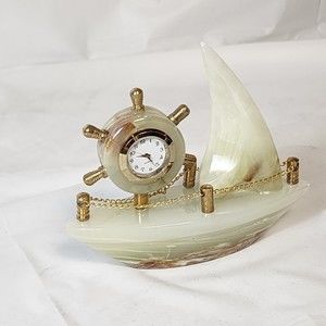 Decorative Collectible Ship Clock Desk Mentel Marble Onyx Handmade Imported NEW