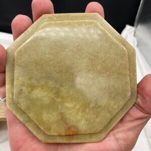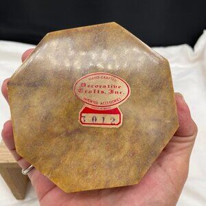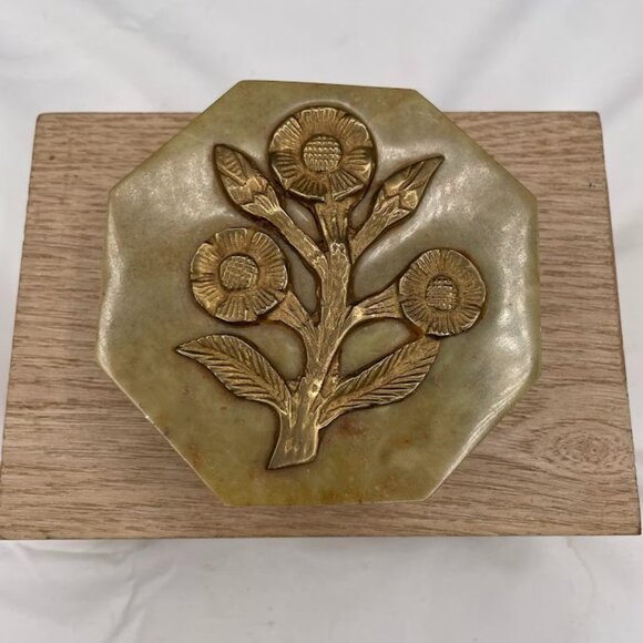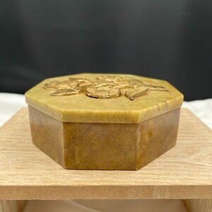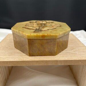 Decorative Crafts Inc India Octagonal Soapstone Dresser Trinket Box Brass Flower