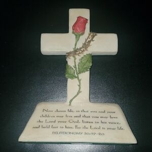 Decorative Cross with Red Rose Accent Deuteronomy Bible Quote 30:19-20