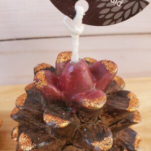 These pinecone candles are so fancy, even squirrels would trade their nuts for them. Get ready to ignite laughter and ambiance in your home. The ends of some of the pinecone arms are missing glitter. Please see photos.