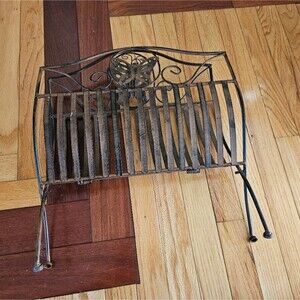 Elegant metal magazine rack. Features intricate butterfly design. Perfect for home decor.