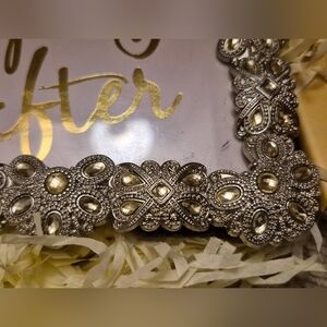Elegant decorative frame with 'Our happily ever after' in gold script. Features intricate silver detailing.