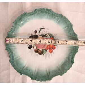 Decorative Fruit Inspired Ceramic Plate Green Scallop Edge Peach Berries Cherry