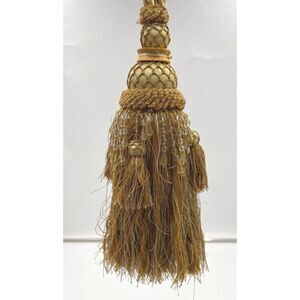 Enhance the elegance of your home with this decorative gold tassel. Its luxurious braided design and sparkling beaded accents make it a sophisticated accessory for curtains or furnishings.