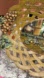 Enhance your home decor with this exquisite decorative tray featuring a peacock design. The gold and brown tones add a touch of elegance to any room. One of a kind!