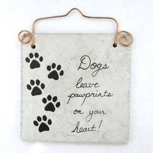 Decorative Hand Crafted Stone Tile Sign Dogs Leave Pawprints On Your Heart