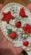Charming decorative hand mirror adorned with red accents and pearl details. Features playful designs including a teddy bear and flowers.