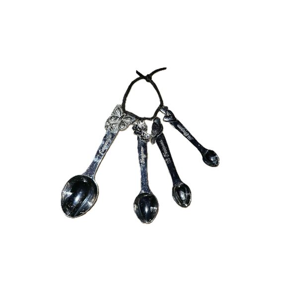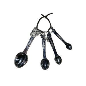 Elevate your kitchen decor with this set of decorative measuring spoons. This beautiful set of four spoons features intricate handles and is perfect for all your baking needs.