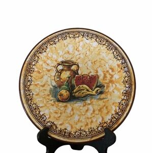 Decorative European Inspired Plate. Vintage. Beautiful vivid color and detailed handpaint. Excellent Condition. Wood stand included! No chips or cracks! It does not have any marks nor stamps but