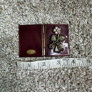 This beautiful enamel frame measures 2 1/2” tall and 1 7/8” wide. Looks like it holds 2 pictures. This item has been used.