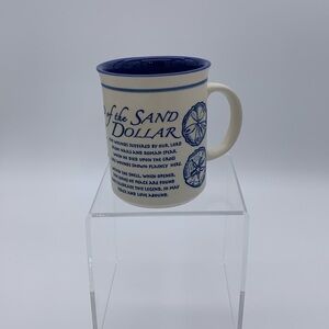 This Decorative Legendary Sand Dollar Stoneware Coffee Mug with Handle is a vintage piece perfect for all occasions. The round, medium-sized mug features a beautiful print of the Legend of the Sand Dollar, with a solid blue interior on a white background exterior. Made of stoneware, this 12 oz mug can be used for hot or cold beverages. The nautical and religious themed mug also showcases art elements, making it a stylish addition to any kitchen or home decor collection. With its unique design and sturdy construction, this Sand Dollar Coffee Mug is sure to be a treasured item for any coffee lover.