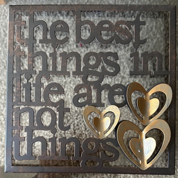 Stylish metal wall art featuring a heartfelt quote and gold heart accents. Perfect for adding a touch of elegance to any room.