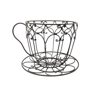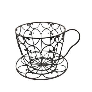 This decorative metal plant holder, shaped like a teacup, adds a touch of whimsy and elegance to any indoor or outdoor space. Crafted from sturdy metal wire, its intricate design is eye-catching and functional, providing a unique way to showcase your plants. Ideal for garden enthusiasts or as a charming addition to home decor. Approx. size 7.25" Tall x 8" Top Diameter x 9.5" Bottom Diameter x 11" Wide including Handle.