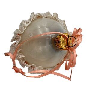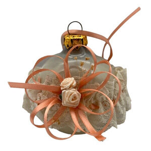 Decorative Ornaments Peach Glam Ribbon Lacy Frosted Ball Heart Roses Clear Glass