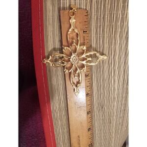 This slightly baroque styled cross incorporates a butterfly design as well. The design is symbolic of faith, transformation and renewal with the butterfly representing rebirth. This item is not necessarily designed only as a Christmas ornament. It could be used year-round. Please review each photograph provided as our pictures are always an important part of our descriptions.