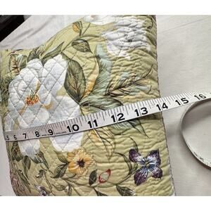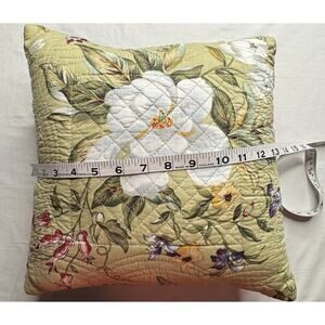 Decorative Pillow Quilted Magnolia Print Sage Green Ivory Red 14” Square.