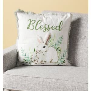 Bunny Tales Decorative Pillow Mixed Embroidery Fringe Edging Blessed
