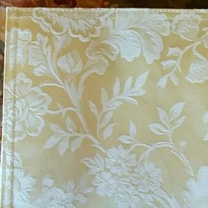 Decorative and elegant placemats, set of four, new with tags. Color is an off white or eggshell, fabric has a semi-shiny satin feel.