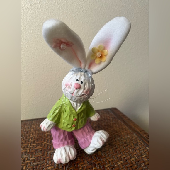 Decorative rabbit with whiskers and felt ears with flowers. Stands up. 10 inches tall including ears. Very cute. Original owner. excellent condition.