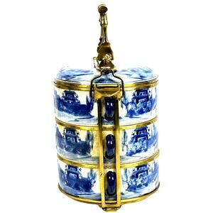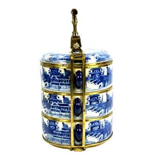 Decorative Reproduction Antique Blue and White 3-Tier Chinese Tiffin/Wedding Box