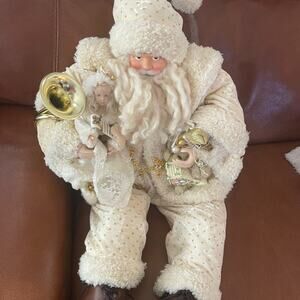Decorative Santa Claus ivory suit porcelain hands decorative sitting Christmas