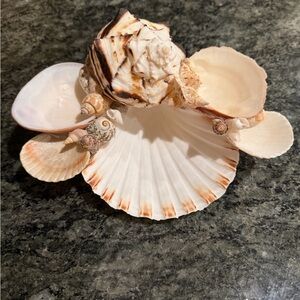 Beautiful hand decorated collection of natural seashells. Perfect for home decor or crafts. Features shades of cream and tan.