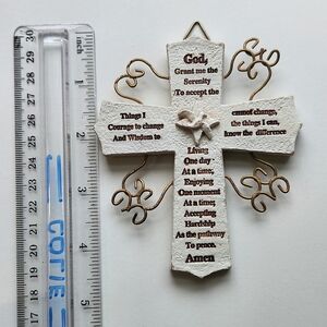 Beautiful wall cross featuring the Serenity Prayer. Elegant gold accents on a cream background.