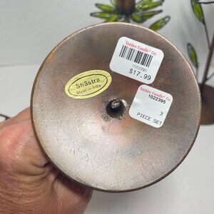 This handcrafted set adds a sophisticated touch to any space. The copper finish complements intricate green bead detailing, enhancing visual appeal and functionality.