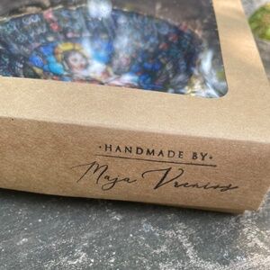 Clam Shell was hand painted and decoupaged with beautiful bright color picture of Saint Mary and the child.