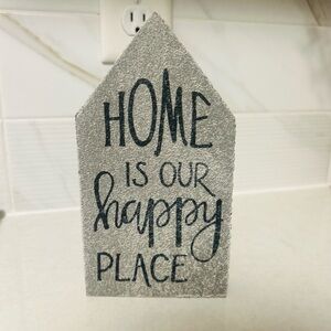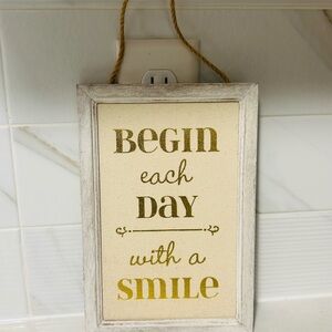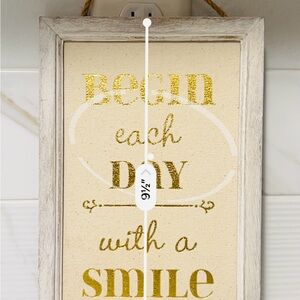 Set of three decorative signs. Features inspirational quotes. Colors include gray, black, tan, and gold.