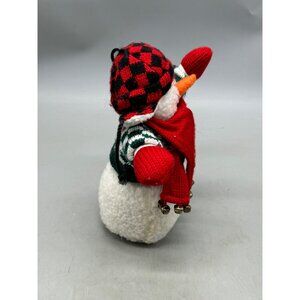 Decorative Snowman Plush With Red Scarf & earmuff Hat cheeker bells stand READ