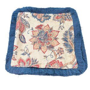 Decorative Square Pillow Cover Floral Blue Fringe Border 17"x17" Set of 2