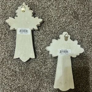 Set of two decorative stone crosses with inspirational quotes. Elegant design with intricate details. Perfect for home decor.
