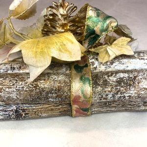 Birch tree log bundle wrapped with imitation roses leaves ,pine cones