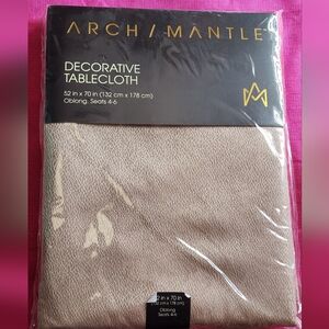 Enhance your dining experience with the Decorative Tablecloth. This elegant tan tablecloth adds a touch of sophistication to any dining setting.