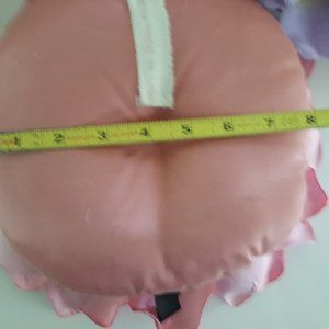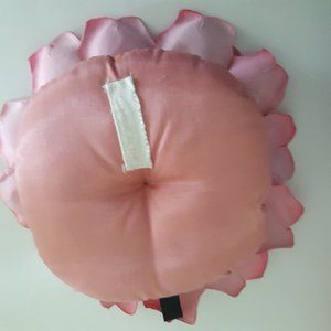 Pre-owned. In very good condition. Has a black tab for hanging and also a white tab that was sewn on because I intended to affix leaves and stem and hang from the wall... never did! See Photos. Pillow measures approximately 8" Length across the back, a little more in front with the petals approx. 4" deep. Small, beautiful pillow.