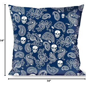 Decorative Throw Pillow Bandana Skulls Royal Blue White 14" x 14"