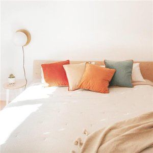 🧿SET OF 4: Includes 1 beige velvet pillow + 1 teal velvet pillow + 1 yellow velvet pillow + 1 orange velvet pillow