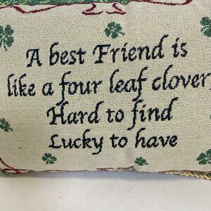 Decorative Throw Pillow With Irish Four-Leaf Clover Quote & Gold Trim - "A Best