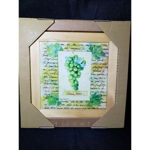 Decorative Tile Trivet Grapes Wine Lover Gift Wood Framed Hot Plate Chenin Blanc