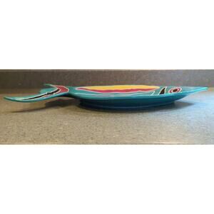 Decorative Tropical Fish Serving Plate Glazed Pottery Green Red Yellow 18x10x1.5