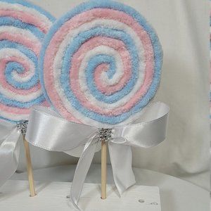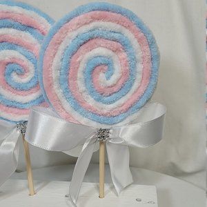 Decorative Velvety Yarn Baby Blue, Pink, & White Lollipop