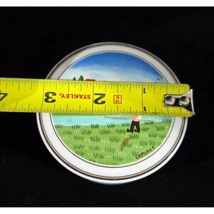 This vintage Vilkeroy & Boch Laplau porcelain trinket box features a charming countryside scene, exuding elegance and sophistication. Ideal for safely storing small valuables, its detailed artistry makes it a stylish addition to any decor. Excellent cond. No box
