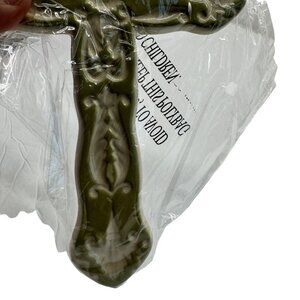 Decorative Wall Cross Cream & Sage Ceramic Celadon Signed Cat 6" x 10"