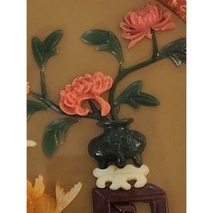 This decorative wall plaque is a stunning piece of Chinese art that features intricate faux jade and coral detailing. The round vintage reproduction measures 7 inches in diameter and was crafted in China with a focus on traditional Chinese culture. The plaque is perfect for collectors of Chinese art and those looking to add a touch of elegance to their home decor. Its featured refinements include vintage Chinese design, while its country/region of manufacture is China itself. This plaque is a must-have for lovers of Asian art and culture.