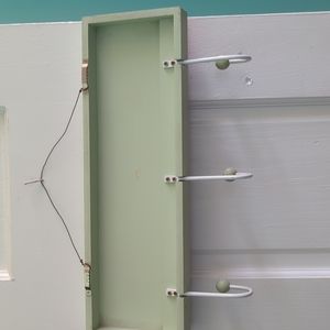 This hanging decorative wall sign is very pretty! It can be hung by the wire or with the back picture hanging thing. See picture. I never used it. It has a bluebird on it and a pink hydrangea. It would look great in any room. Light weight