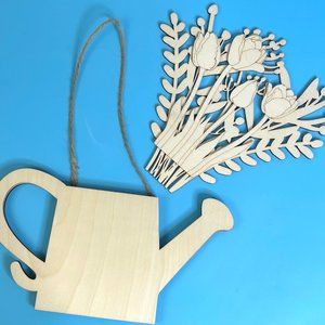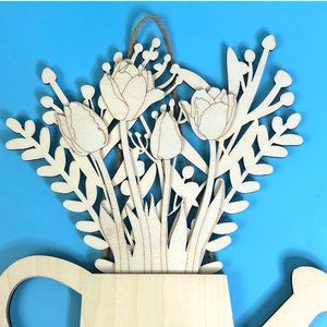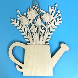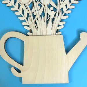 Decorative Wood Watering Can w/ Flowers Wooden Wall Hanging Decor