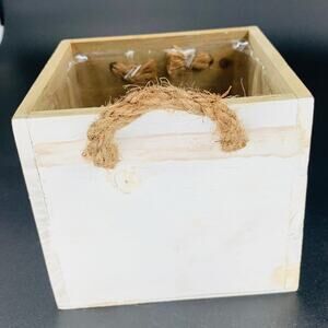 Decorative wooden box designed by Tina Wenke featuring a pink floral arrangement design and a small rope handle. This charming box stands 4.5 inches high and includes a removable plastic liner, making it perfect for holding small plants, flowers, or organizing household items. Ideal for use as a gift box, storage container, or decorative accent in any room. The vintage-inspired floral design adds a touch of elegance to any space. Great for farmhouse, shabby chic, or cottage-style decor. Preowned and in good condition, this versatile box is both functional and stylish for various uses.