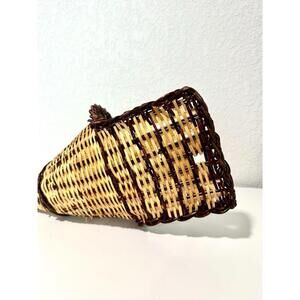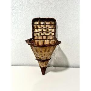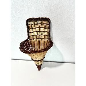 Decorative Woven Brown Basket, Tan Wall Hanging Cornucopia Basket